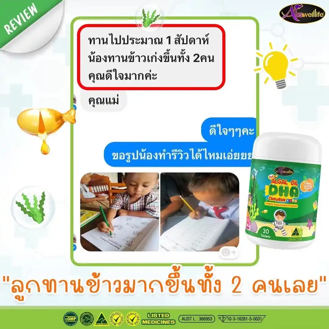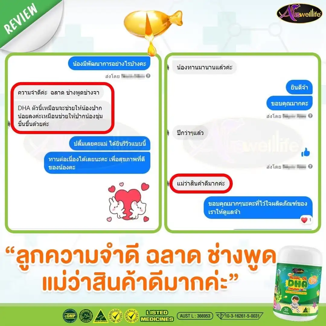 รีวิว จากลูกค้าที่ซื้อ DHA ให้ลูกรัก ทานเป็นประจำ
